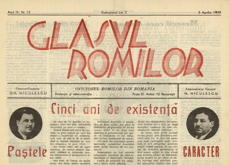 In some countries of South-Eastern Europe, alongside the mainstream media, Roma magazines emerged in the interwar period, often conveying a different, more self-assured image of the minority. Glasul Romilor, 5 April 1939, Cover (detail).